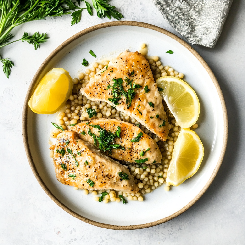Start by searing the chicken until it’s golden brown, then set it aside. While your chicken is resting, cook the couscous according to package instructions. Finally, prepare your lemon dill sauce to drizzle over everything for a burst of flavor.