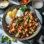 30-Minute Spicy Thai Basil Chicken (Pad Krapow) is a quick, flavorful stir-fry that captures the essence of Thai street food. Featuring succulent chicken thighs, aromatic Thai basil, and a spicy kick from bird’s eye chilies, this dish comes together in just half an hour. Perfect for busy weeknights or entertaining friends, it promises to deliver an unforgettable culinary experience that will have everyone reaching for seconds.