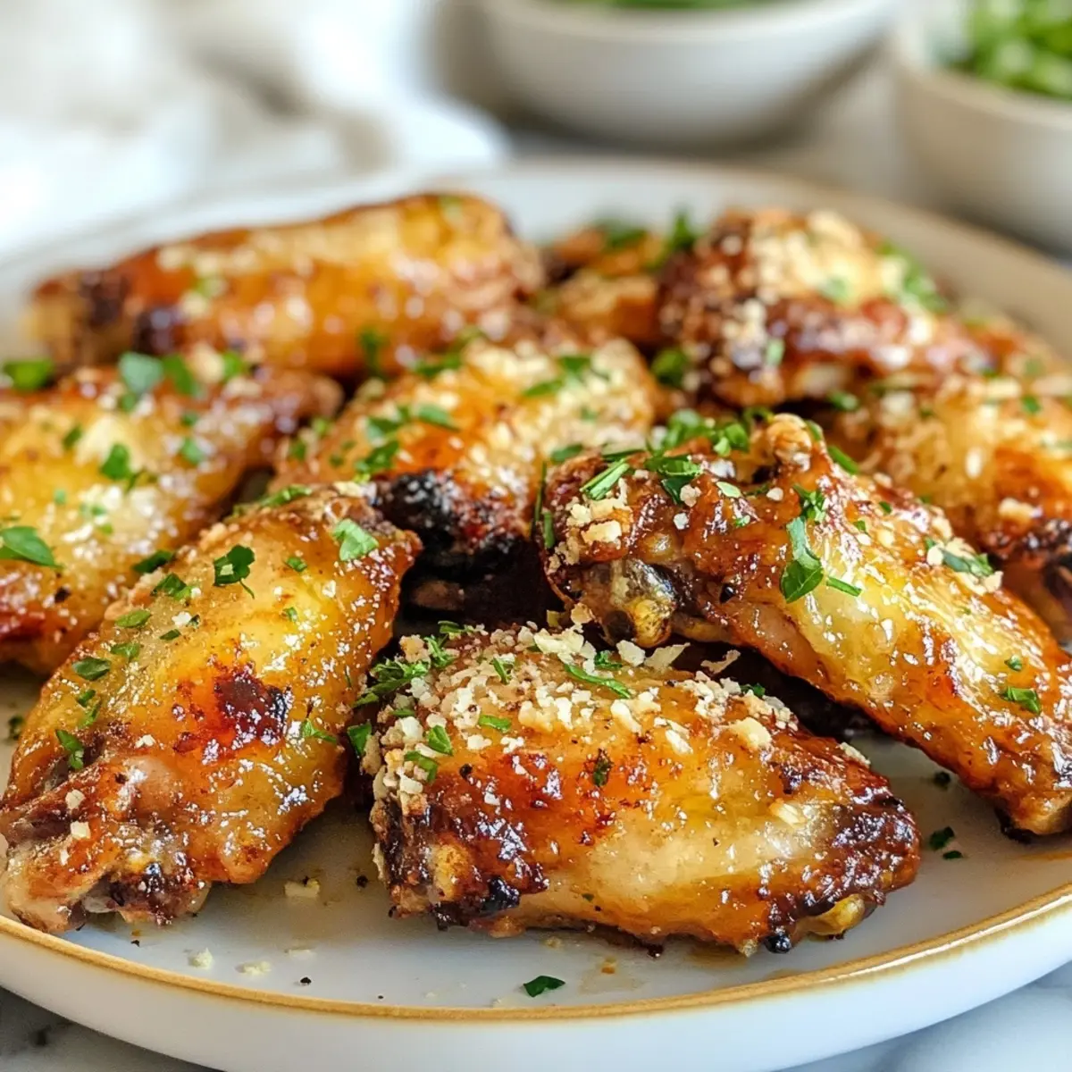 - Serve: Once perfectly crispy, plate the wings and garnish with extra parmesan cheese and some optional fresh parsley. Enjoy them hot with your favorite dipping sauces like ranch or blue cheese!