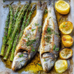 In summary, Sheet Pan Roasted Mediterranean Sea Bass with Asparagus is an easy yet flavorful cod recipe combines tender sea bass with vibrant asparagus for a healthy meal that’s simple to prepare and clean up. Utilizing a sheet pan ensures even cooking and harmonizes flavors beautifully. With just a few ingredients and straightforward steps, you can create a delightful culinary experience perfect for any weeknight dinner or special occasion.