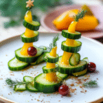 Cucumber Christmas Trees are a fun and festive appetizer made from sliced cucumbers arranged to resemble a Christmas tree. Often topped with colorful ingredients like cherry tomatoes, cheese, or olives, these trees add a creative touch to holiday gatherings. They are not only visually appealing but also healthy, making them an excellent choice for parties. You can easily customize them to fit your taste preferences while keeping the holiday spirit alive.