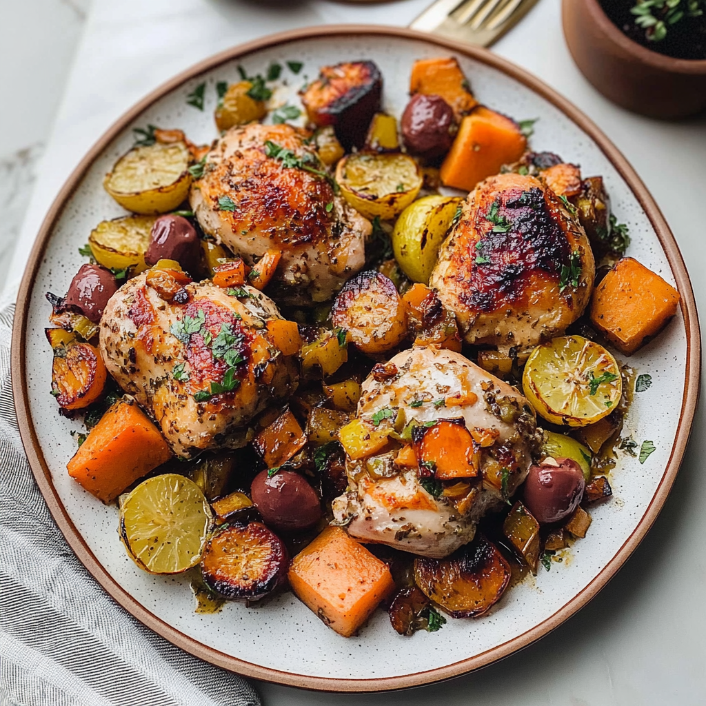 In summary, Sheet Pan Mediterranean Lemon-Olive Chicken & Veggies offers an easy and flavorful option for any weeknight dinner. With its wholesome ingredients, vibrant flavors, and minimal cleanup, it’s both convenient and satisfying. By customizing the vegetables to suit your taste or seasonal availability, you can enjoy this recipe year-round. Don’t hesitate to try this delightful dish that brings a taste of the Mediterranean right to your home! For more inspiration, check out this easy chicken recipe recipe.