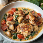 Slow Cooker Tuscan Chicken with Mushrooms & Spinach is a comforting, creamy dish that transports you straight to Italy. This effortless recipe features tender chicken simmered with earthy mushrooms and vibrant spinach, enveloped in a rich, savory sauce. Perfect for busy weeknights or special gatherings, this meal is as delightful to eat as it is simple to prepare—just set it in your slow cooker and let the flavors meld beautifully.