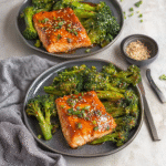 - Sprinkle toasted sesame seeds over both salmon and broccoli before serving.