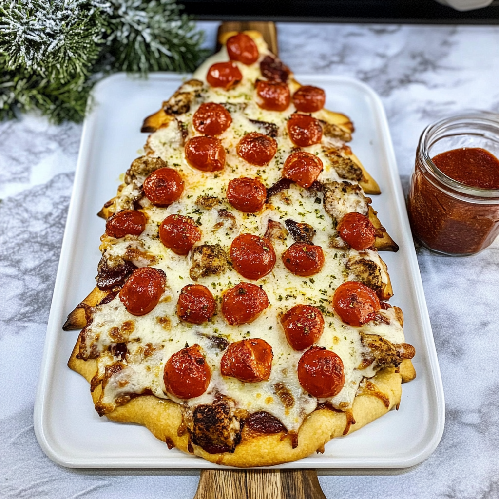 Picture this: a golden-brown pizza shaped like a Christmas tree, adorned with vibrant toppings that burst with flavor—pepperoni ornaments, green bell pepper garlands, and gooey cheese glistening under twinkling lights. This pizza isn’t just visually stunning; it’s the perfect centerpiece for holiday gatherings, making it a must-have for your festive celebrations.