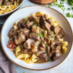 Store any leftovers in an airtight container in the fridge for up to three days. Reheat gently on the stovetop or microwave, adding a splash of broth if it thickens too much—nobody likes a dry stroganoff!