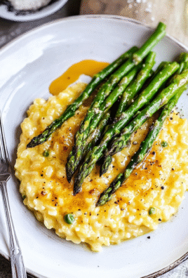 Saffron Risotto with Asparagus: a dish that dances on your palate and wraps you in its warm embrace. Imagine creamy, dreamy rice infused with the golden hue of saffron, while tender asparagus spears peek through like little green trumpets announcing the arrival of spring. The aroma wafts through your kitchen, making your taste buds do a happy jig.