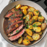 Indulge in a delightful dinner with our Sheet Pan Garlic Butter Steak & Potatoes. This simple yet impressive one-pan meal features succulent steak infused with rich garlic butter, perfectly roasted baby potatoes, and aromatic herbs. Ideal for busy weeknights or relaxed weekends, this recipe combines ease and flavor, making it a family favorite.