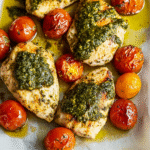 Sheet Pan Pesto Chicken and Cherry Tomatoes is a delightful, one-pan meal that combines juicy chicken breasts with vibrant cherry tomatoes, all enveloped in rich basil pesto. This easy recipe is perfect for busy weeknights or casual gatherings, delivering a burst of flavor that will have everyone at the table asking for more. With minimal prep time and maximum taste, this dish is both satisfying and visually appealing.
