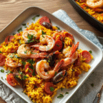 Experience the vibrant flavors of Spain with this Sheet Pan Shrimp & Chorizo Paella-Style Bake. This one-pan wonder features succulent shrimp and spicy chorizo mingling with saffron-infused rice, colorful bell peppers, and aromatic spices—all roasted to perfection. Perfect for weeknight dinners or entertaining guests, it’s a dish that delivers both taste and convenience while making cleanup a breeze.