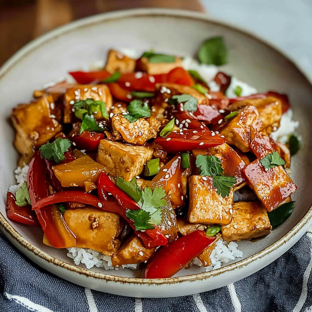 Keywords: - For added flavor, marinate the tofu in teriyaki sauce for 15 minutes before cooking. - Feel free to add seasonal vegetables such as broccoli or snap peas for more variety. - Store leftovers in an airtight container for up to three days.