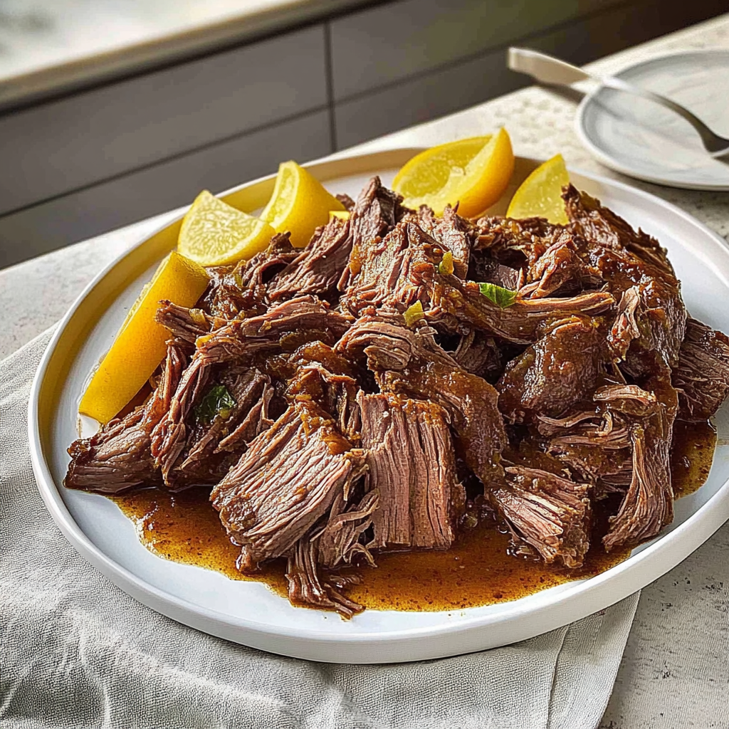 When it’s done cooking, shred or slice the meat (it should fall apart effortlessly) and serve it on a platter with those delightful veggies. Drizzle some of that amazing broth over everything for extra love.