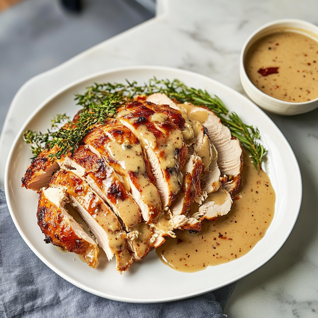 Transfer slices onto plates and drizzle with sauce for the perfect finishing touch! Enjoy your Slow Cooker Turkey Breast alongside mashed potatoes or a fresh green salad for an unforgettable meal that feels like home-cooked comfort at its finest! Thanksgiving Mashed Potatoes.