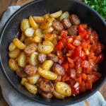 - This delightful sausage, pepper, and potato skillet is not just a meal; it’s a party in a pan.