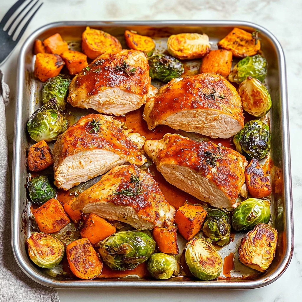 Cozy Sheet Pan Chicken with Brussels Sprouts & Sweet Potatoes
