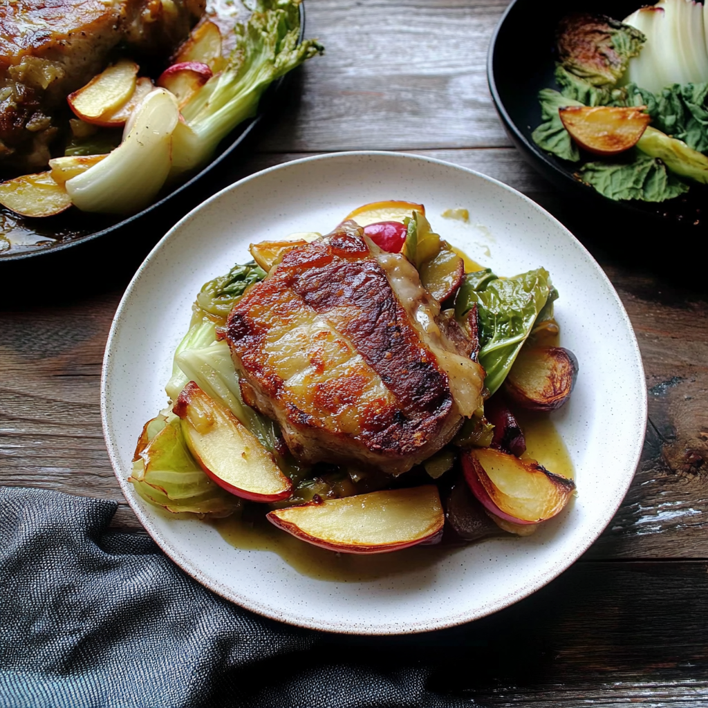 Savory Sheet Pan Dijon Pork with Apples & Cabbage Recipe