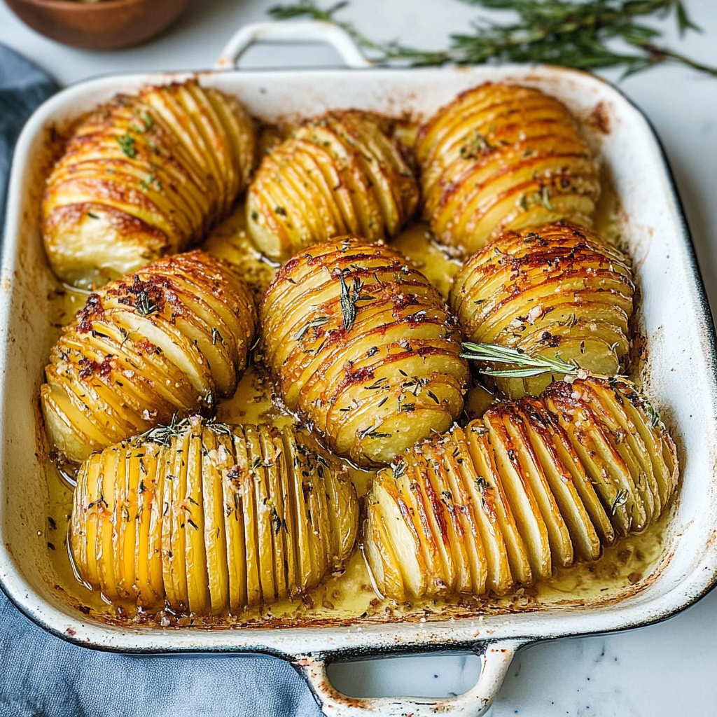 Crispy Sheet Pan Hasselback Potatoes with Garlic & Rosemary