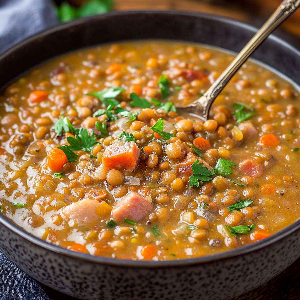 Comforting Slow Cooker Smoky Lentil and Ham Soup Recipe