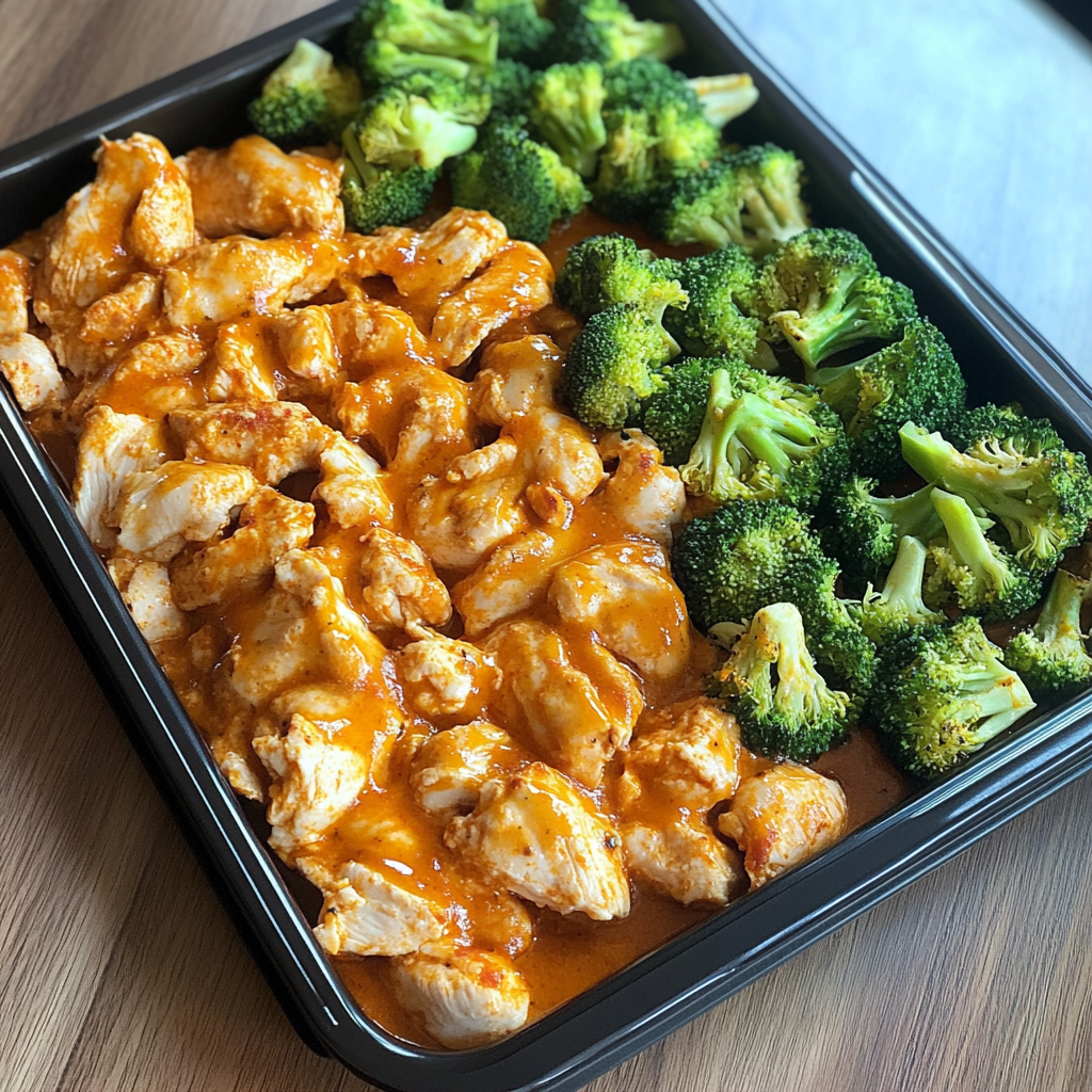 Spicy Sheet Pan Buffalo Chicken & Broccoli Delight