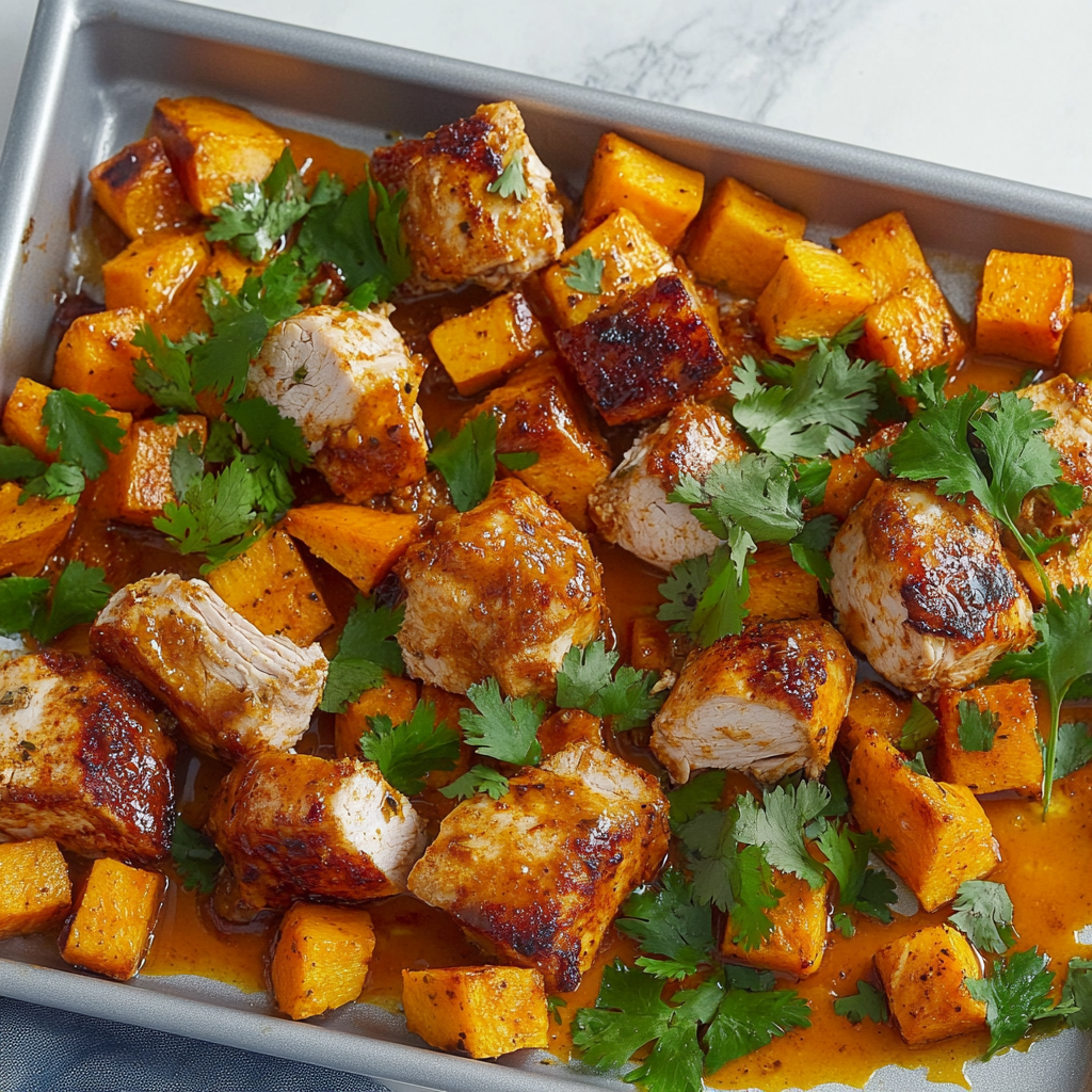 Sheet Pan Spicy Harissa Chicken & Butternut Squash Delight