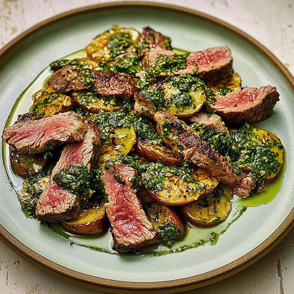 Flavorful Olive Chimichurri Steak with Padron Peppers