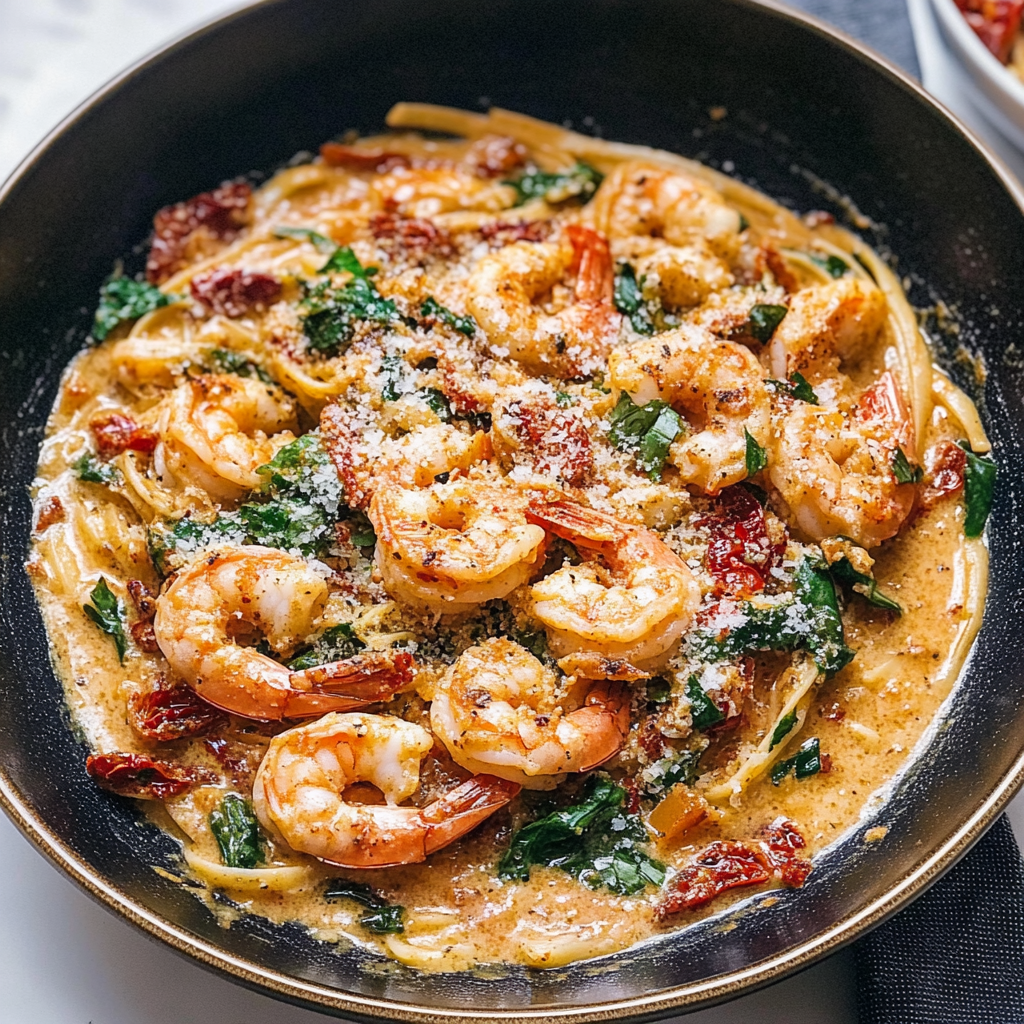 30-Minute Creamy Sun-Dried Tomato Shrimp Linguine Delight