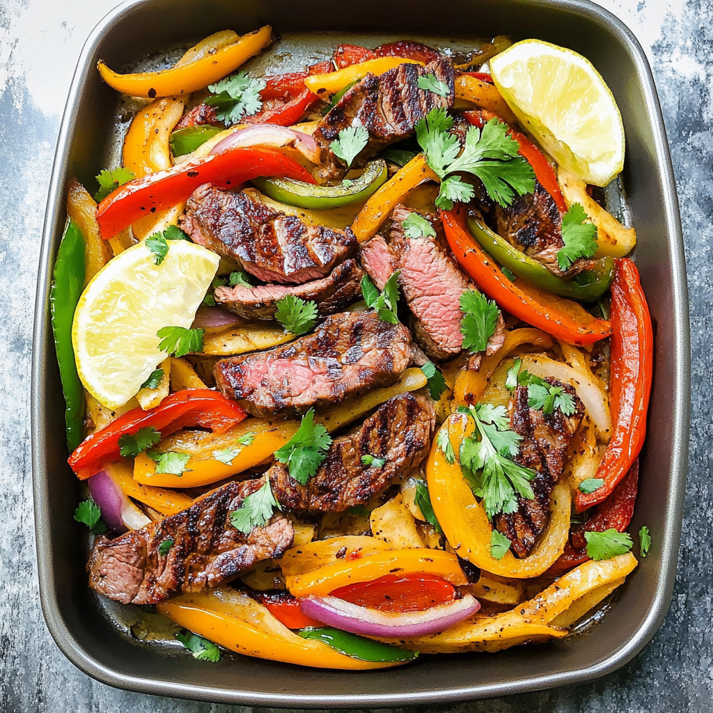 Flavorful Sheet Pan Steak Fajitas with Tri-Color Peppers