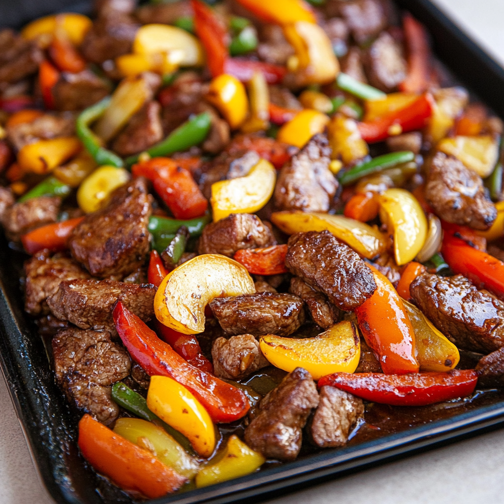 Sizzling Sheet Pan Teriyaki Steak Bites & Bell Peppers