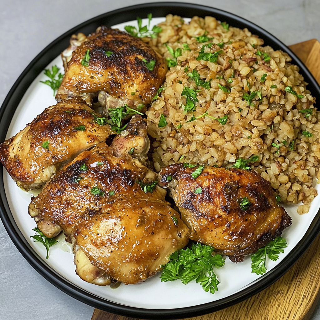 Instant Pot Lemon Chicken Thighs with Brown Rice Delight